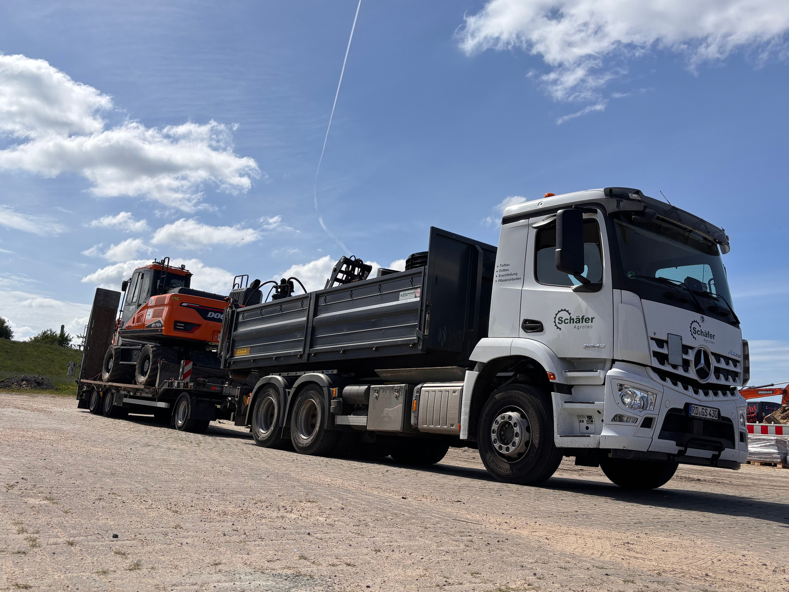 Wir sind ein dynamisches Team mit den Schwerpunkten :Tief- und Straßenbau,Erdarbeiten,Pflasterarbeiten,Schüttgut- und Containertransport,Tiefladertransporte.